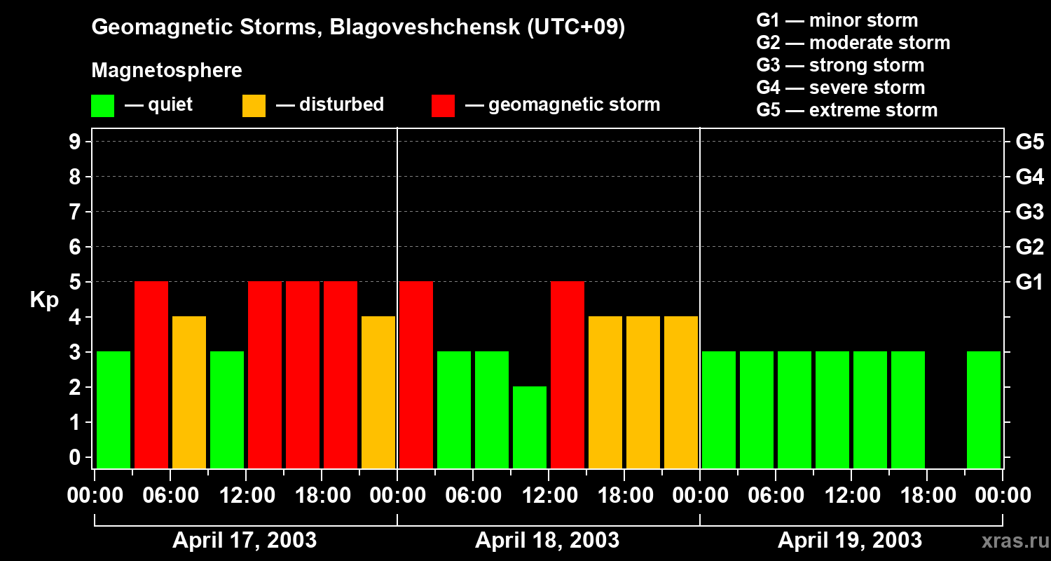 Geomagnetic storms in Blagoveshchensk — Apr 19, 2003