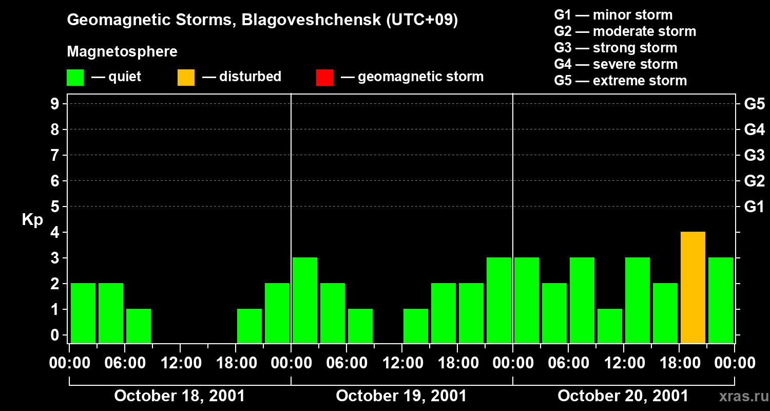 Geomagnetic storms in Blagoveshchensk on Oct 20, 2001