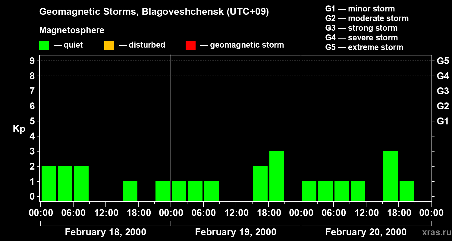 Geomagnetic storms in Blagoveshchensk on Feb 20, 2000