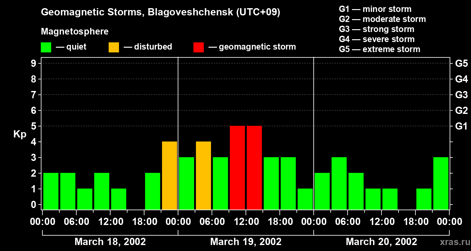 Geomagnetic storms in Blagoveshchensk on Mar 20, 2002