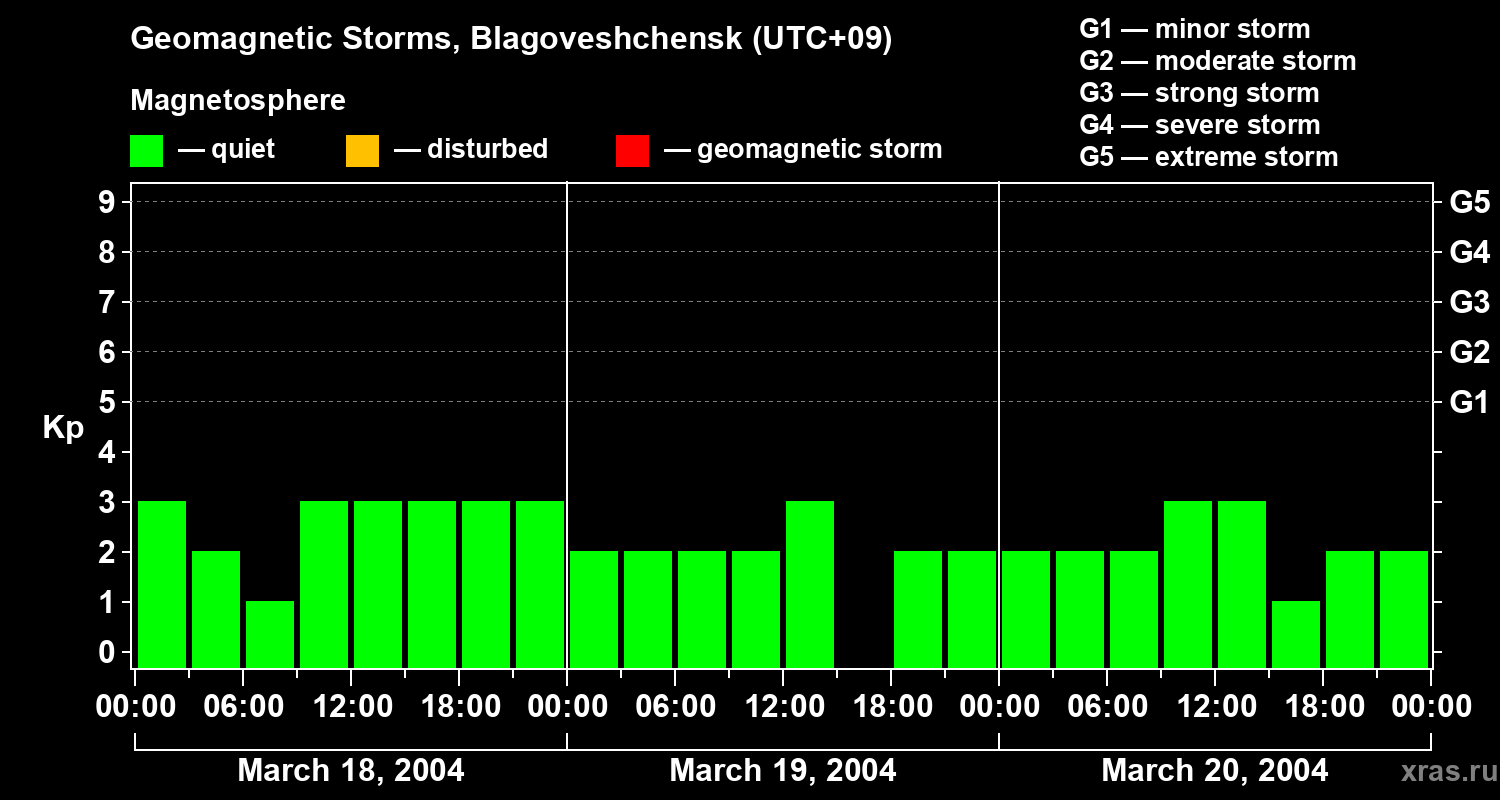 Geomagnetic storms in Blagoveshchensk on Mar 20, 2004