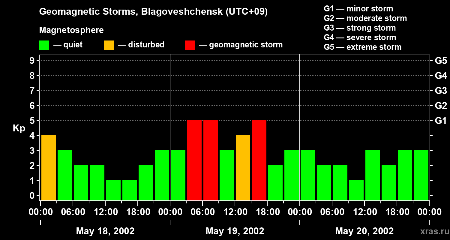 Geomagnetic storms in Blagoveshchensk on May 20, 2002