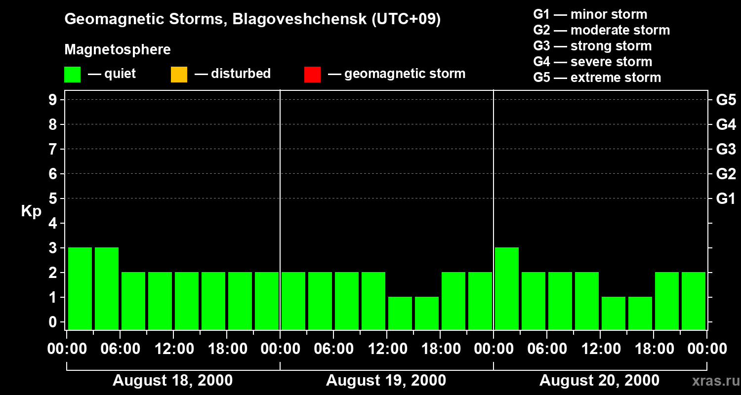 Geomagnetic storms in Blagoveshchensk on Aug 20, 2000