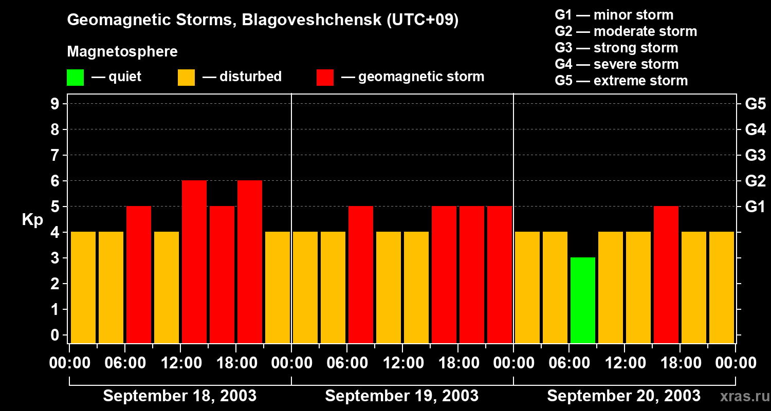 Geomagnetic storms in Blagoveshchensk on Sep 20, 2003