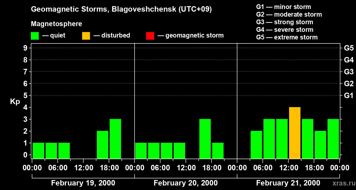 Geomagnetic storms in Blagoveshchensk — Feb 21, 2000