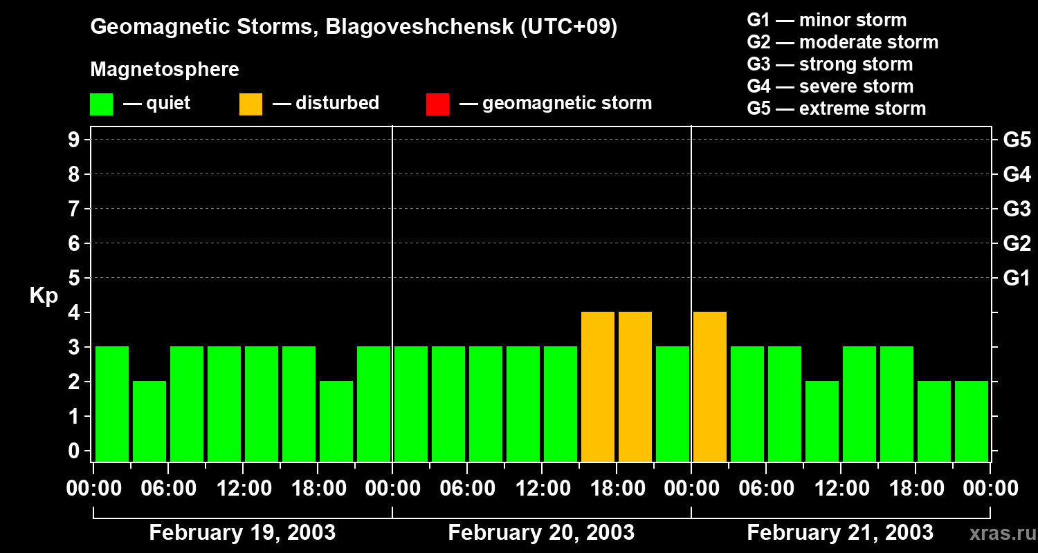 Geomagnetic storms in Blagoveshchensk — Feb 21, 2003