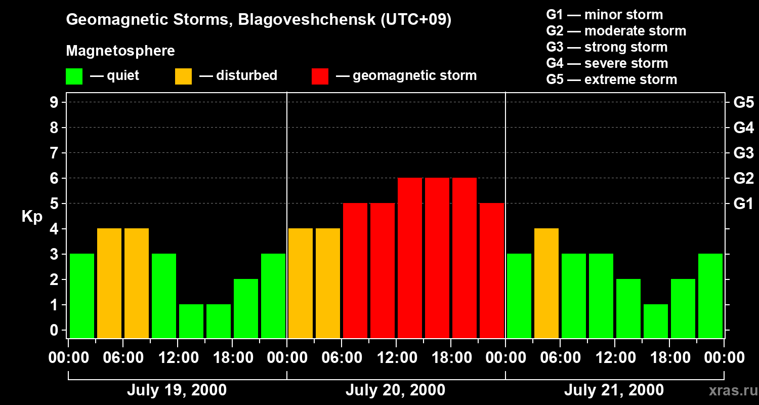 Geomagnetic storms in Blagoveshchensk — Jul 21, 2000