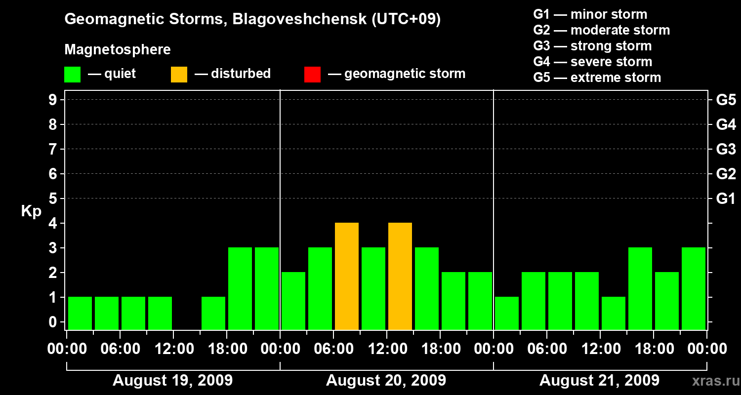 Geomagnetic storms in Blagoveshchensk — Aug 21, 2009