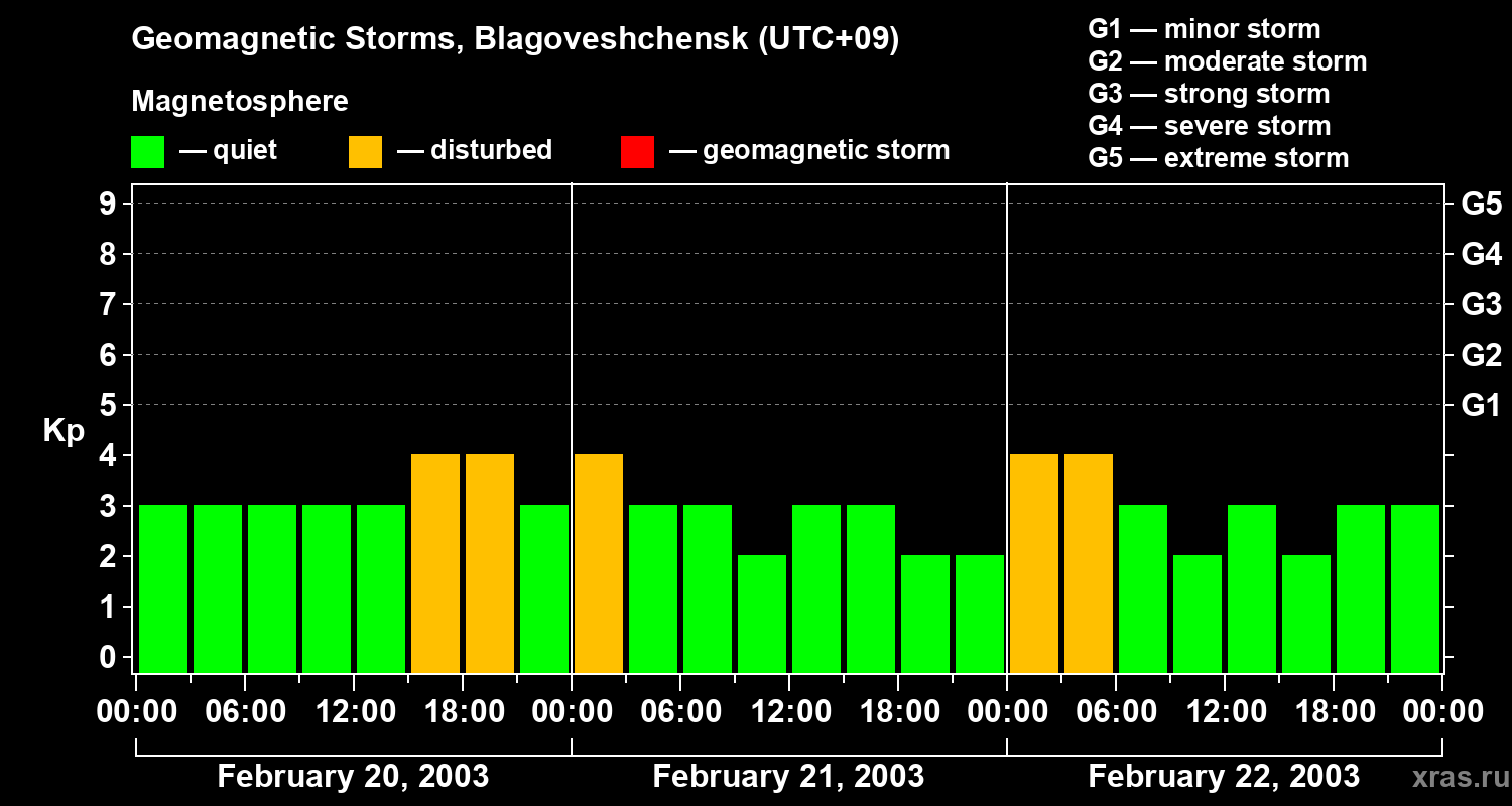 Geomagnetic storms in Blagoveshchensk — Feb 22, 2003