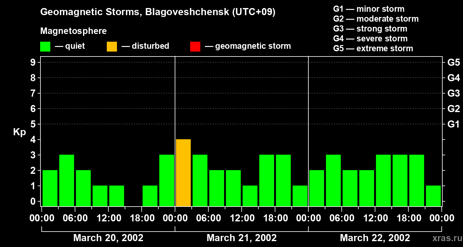 Geomagnetic storms in Blagoveshchensk on Mar 22, 2002