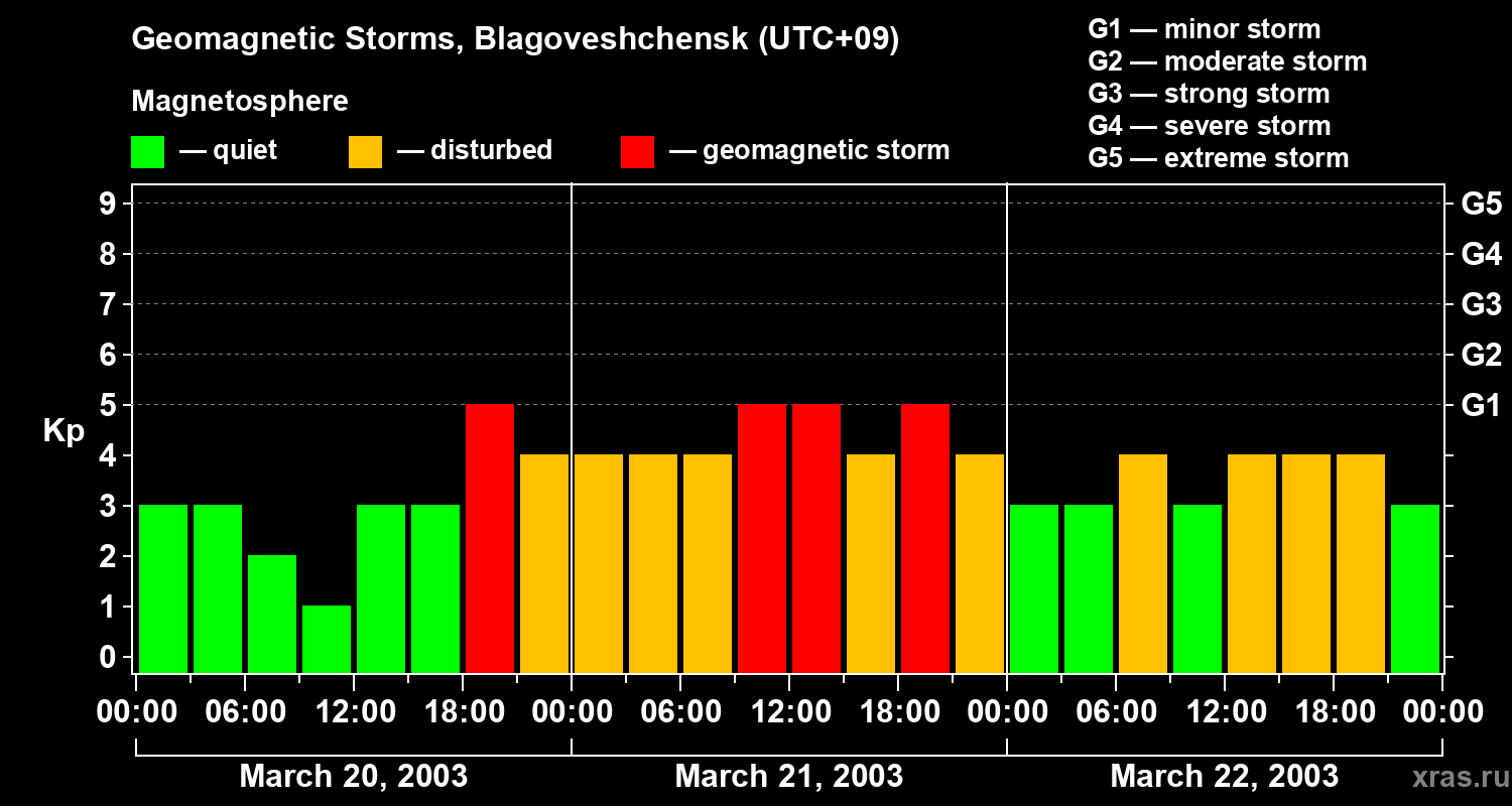 Geomagnetic storms in Blagoveshchensk — Mar 22, 2003