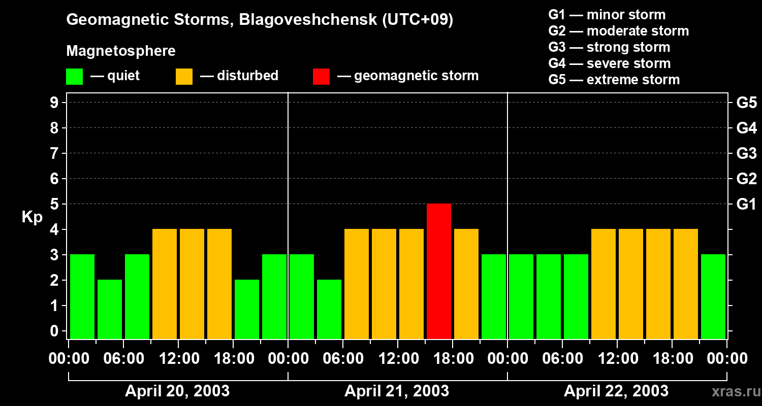 Geomagnetic storms in Blagoveshchensk — Apr 22, 2003