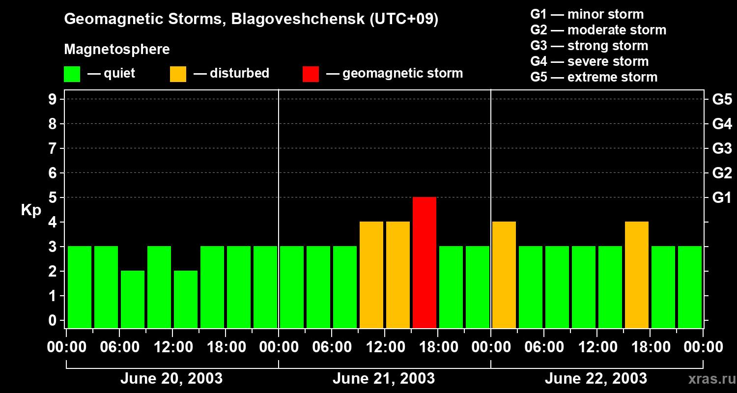 Geomagnetic storms in Blagoveshchensk — Jun 22, 2003