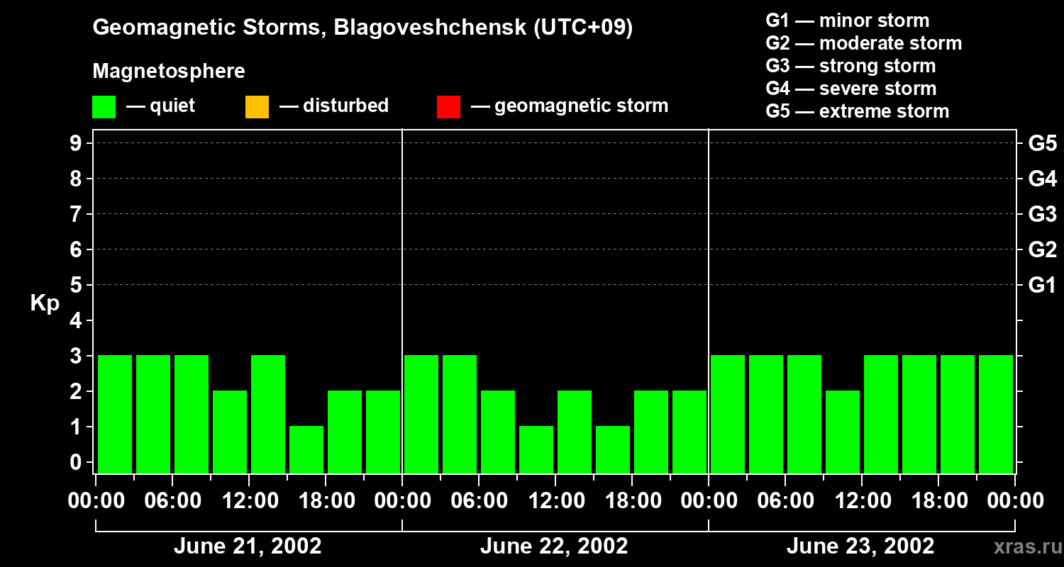 Geomagnetic storms in Blagoveshchensk on Jun 23, 2002