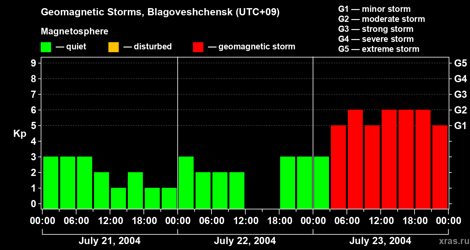 Geomagnetic storms in Blagoveshchensk — Jul 23, 2004