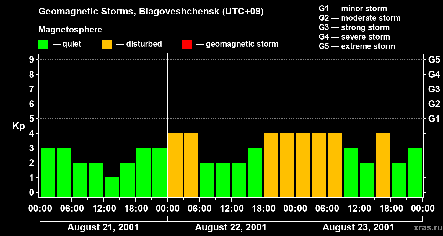 Geomagnetic storms in Blagoveshchensk — Aug 23, 2001