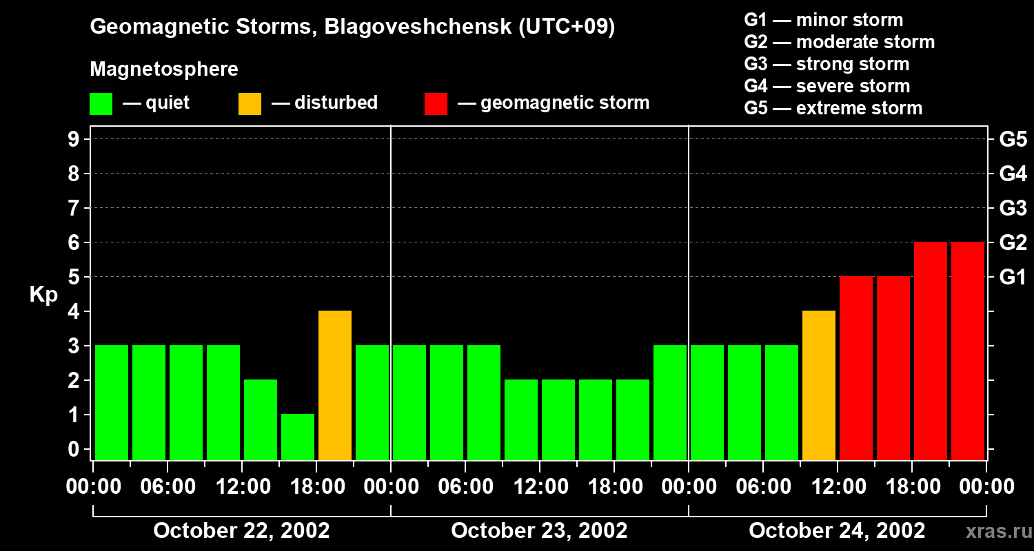 Geomagnetic storms in Blagoveshchensk on Oct 24, 2002