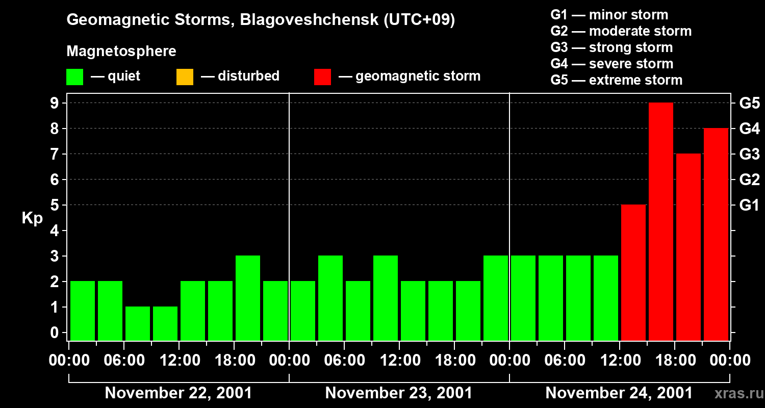 Geomagnetic storms in Blagoveshchensk — Nov 24, 2001