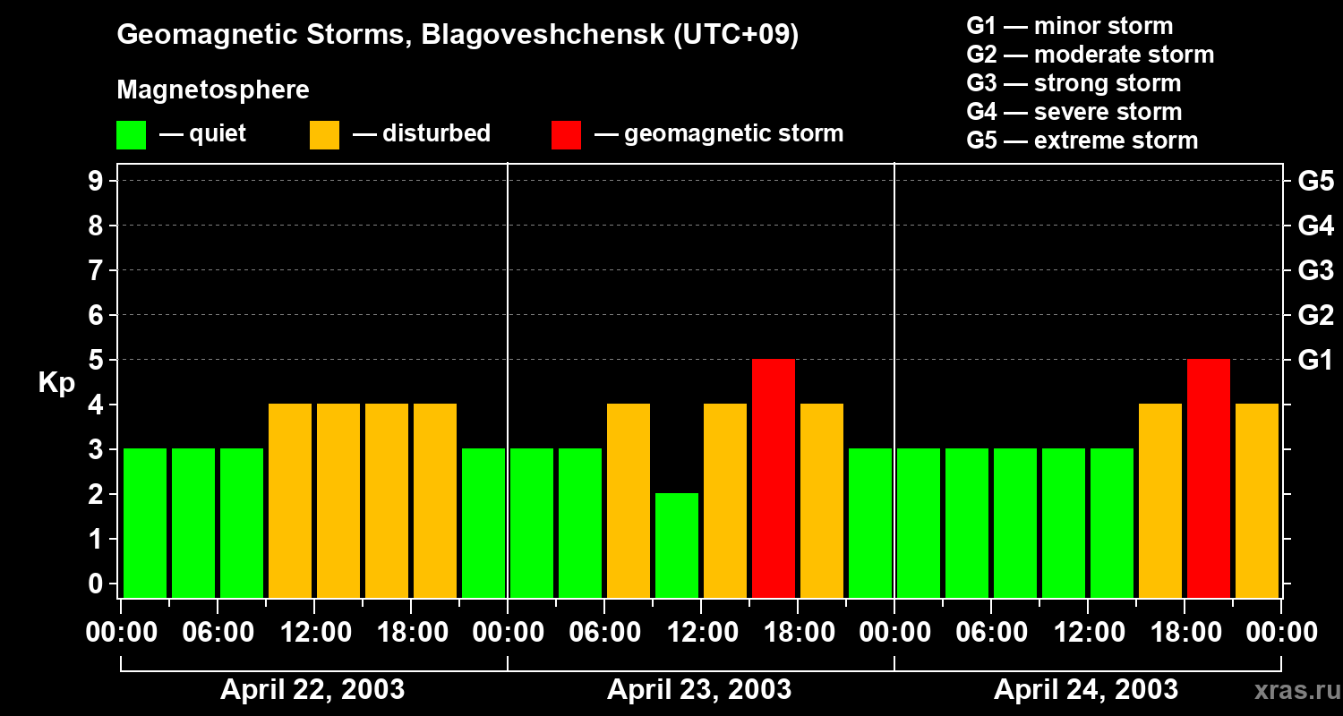 Geomagnetic storms in Blagoveshchensk — Apr 24, 2003