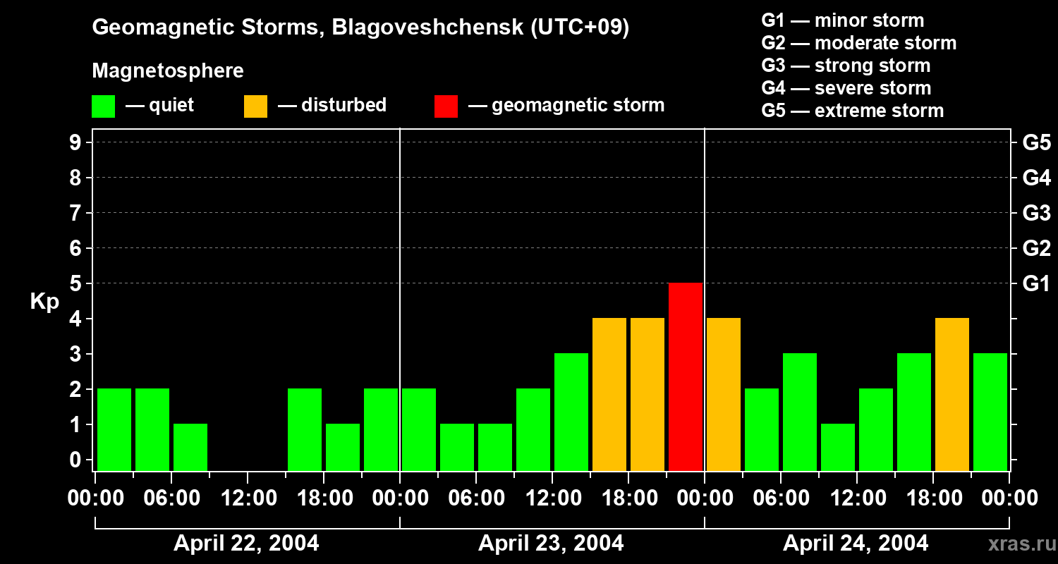 Geomagnetic storms in Blagoveshchensk — Apr 24, 2004