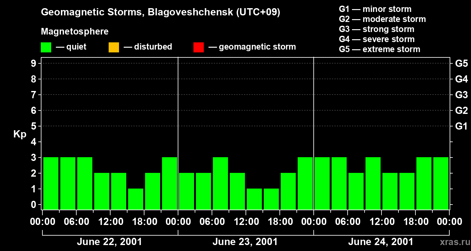 Geomagnetic storms in Blagoveshchensk on Jun 24, 2001