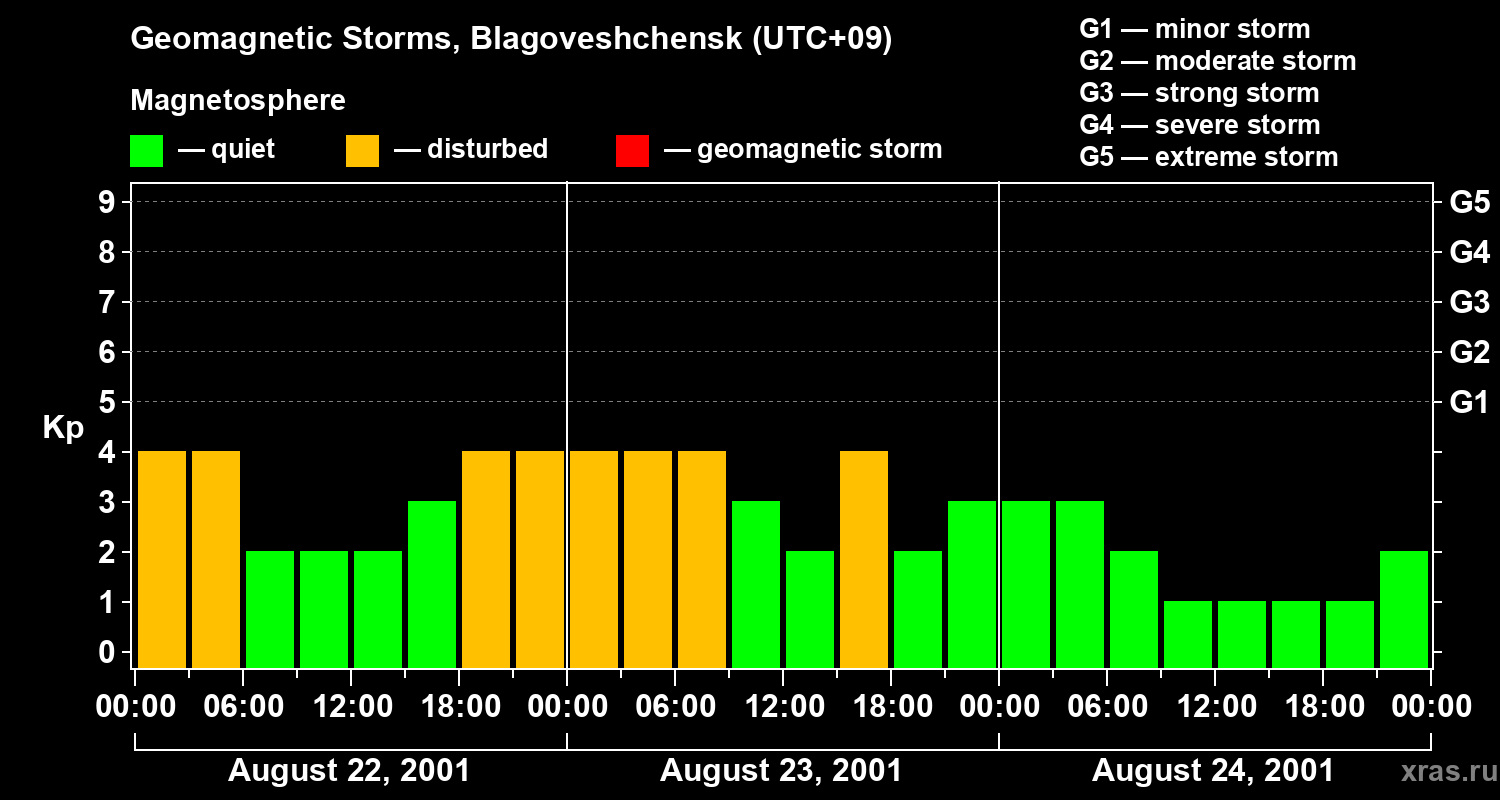 Geomagnetic storms in Blagoveshchensk on Aug 24, 2001