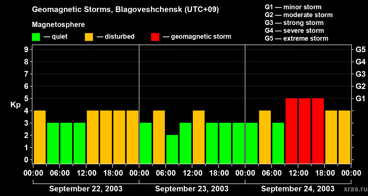 Geomagnetic storms in Blagoveshchensk — Sep 24, 2003