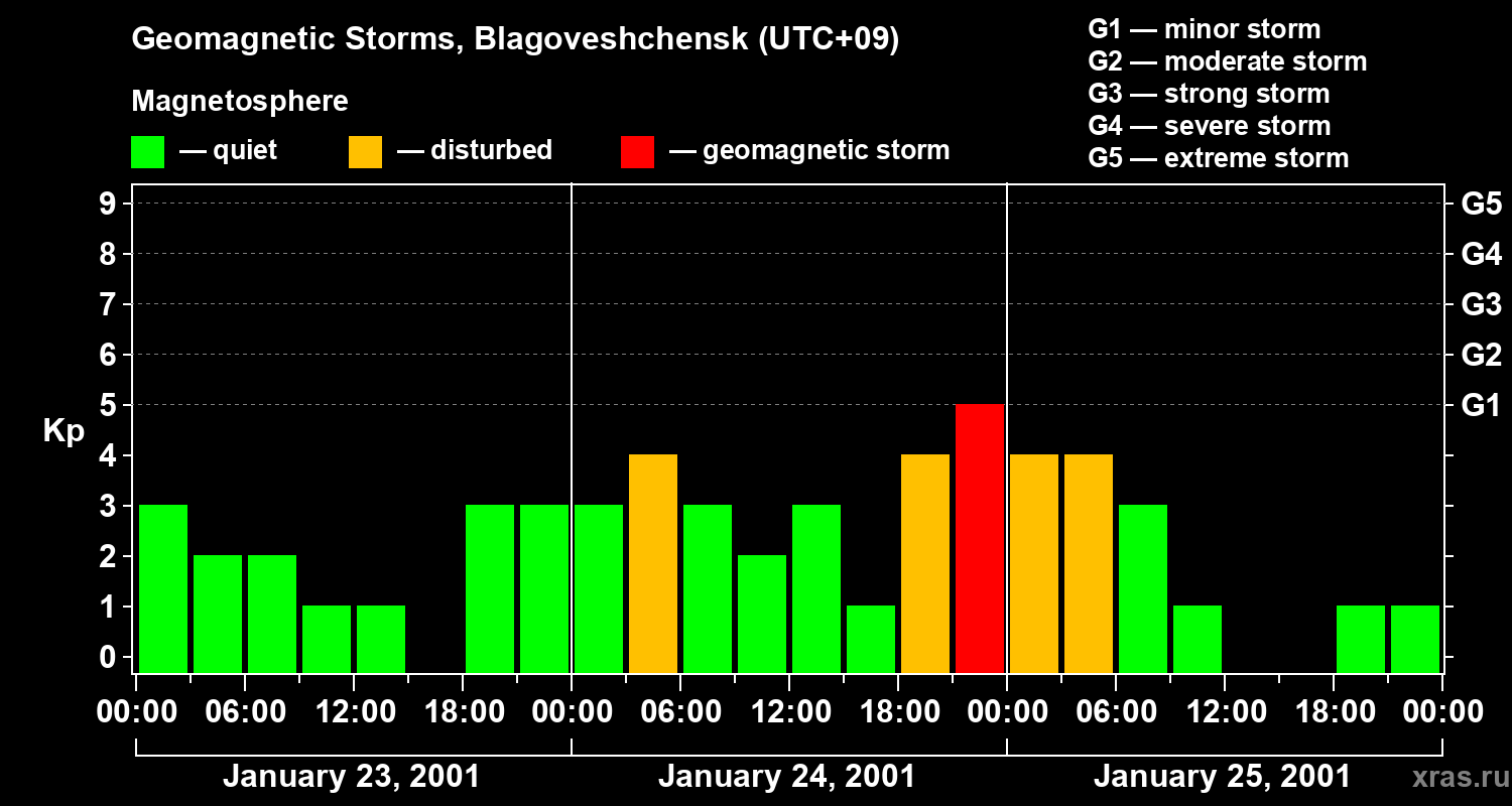 Geomagnetic storms in Blagoveshchensk on Jan 25, 2001