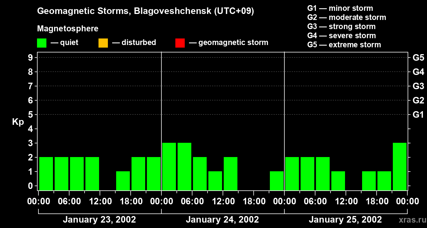 Geomagnetic storms in Blagoveshchensk on Jan 25, 2002