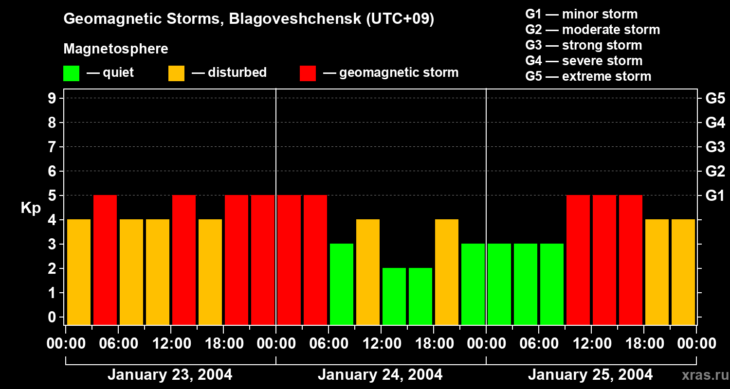 Geomagnetic storms in Blagoveshchensk — Jan 25, 2004