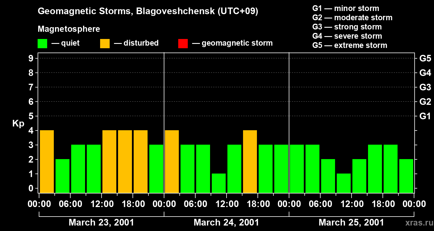 Geomagnetic storms in Blagoveshchensk — Mar 25, 2001
