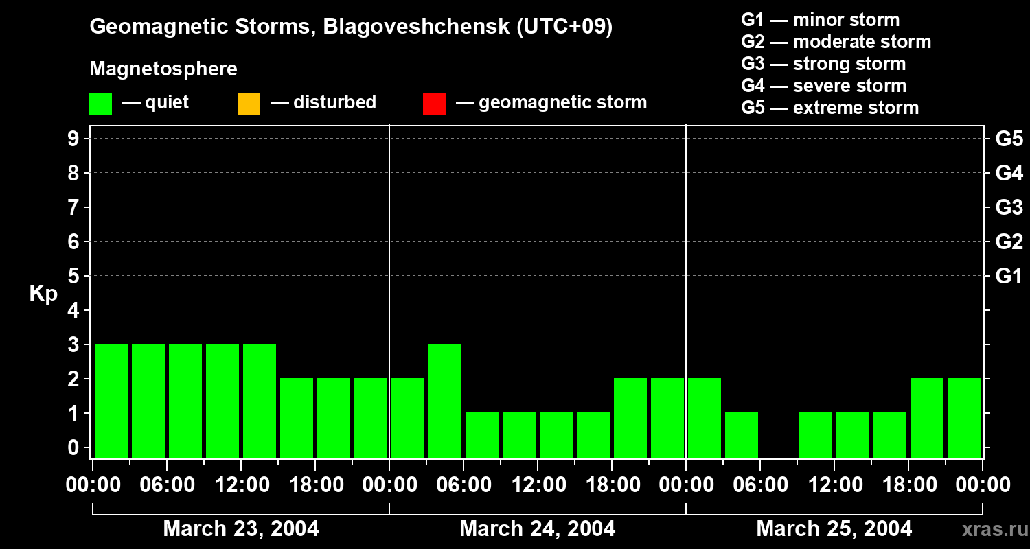 Geomagnetic storms in Blagoveshchensk on Mar 25, 2004
