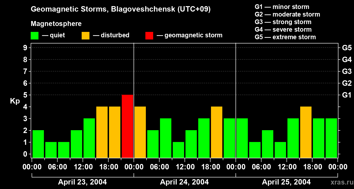 Geomagnetic storms in Blagoveshchensk — Apr 25, 2004