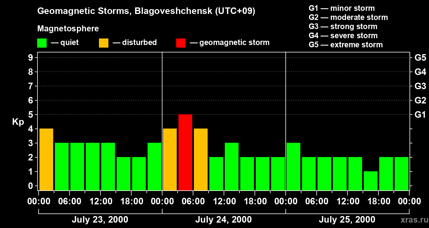 Geomagnetic storms in Blagoveshchensk — Jul 25, 2000