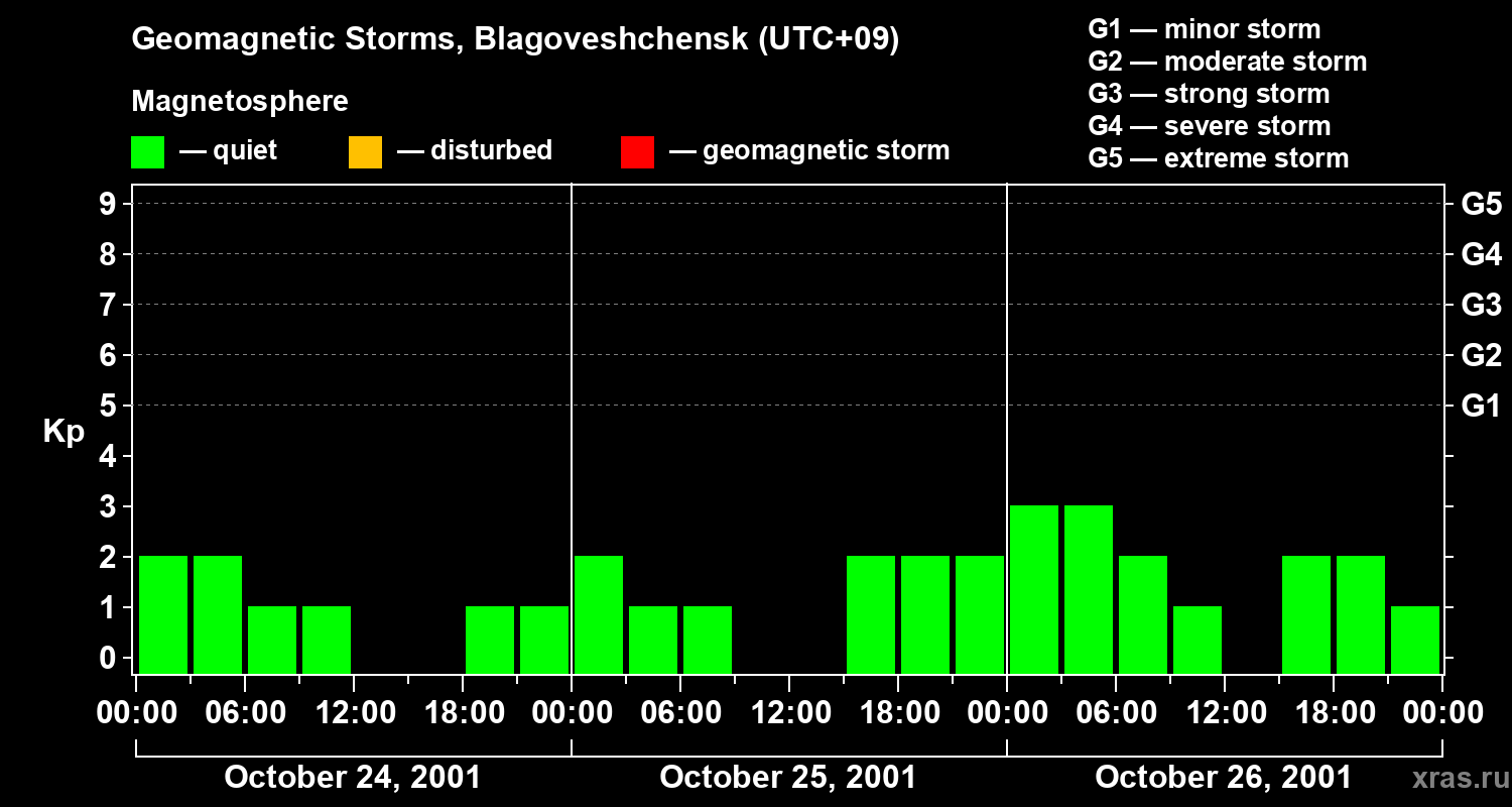 Geomagnetic storms in Blagoveshchensk on Oct 26, 2001