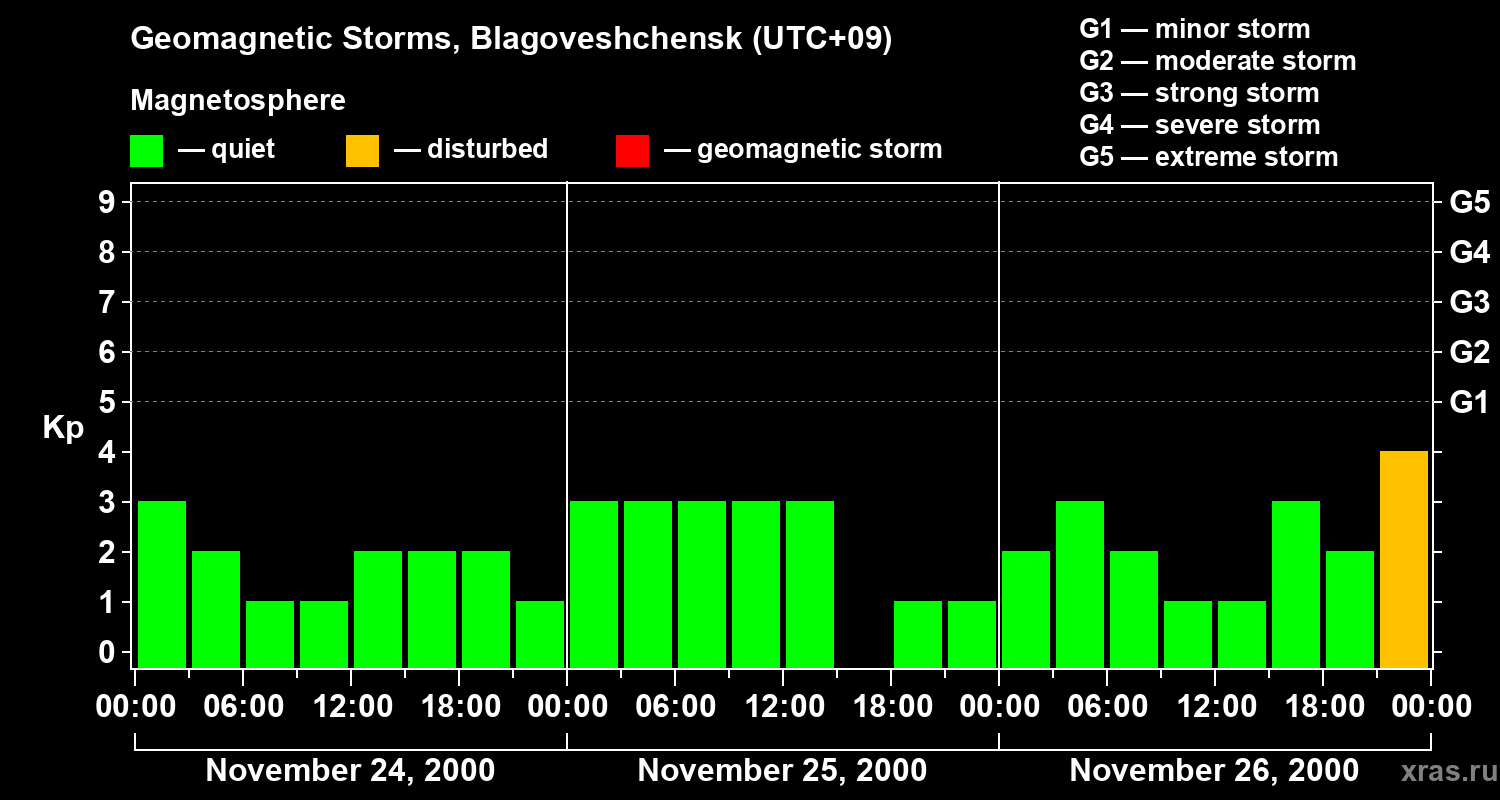 Geomagnetic storms in Blagoveshchensk on Nov 26, 2000
