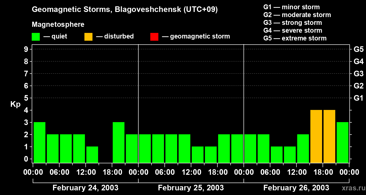 Geomagnetic storms in Blagoveshchensk — Feb 26, 2003