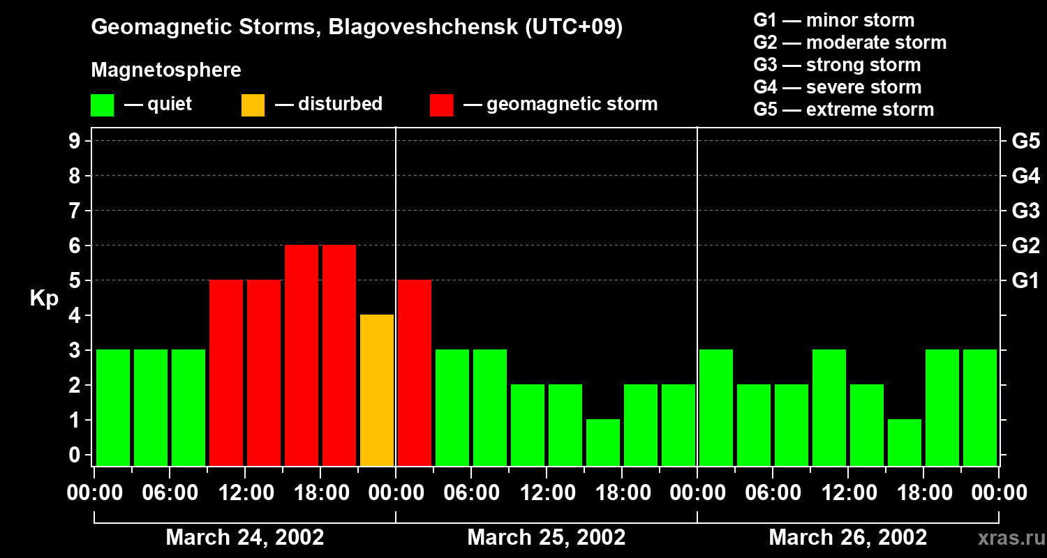Geomagnetic storms in Blagoveshchensk on Mar 26, 2002