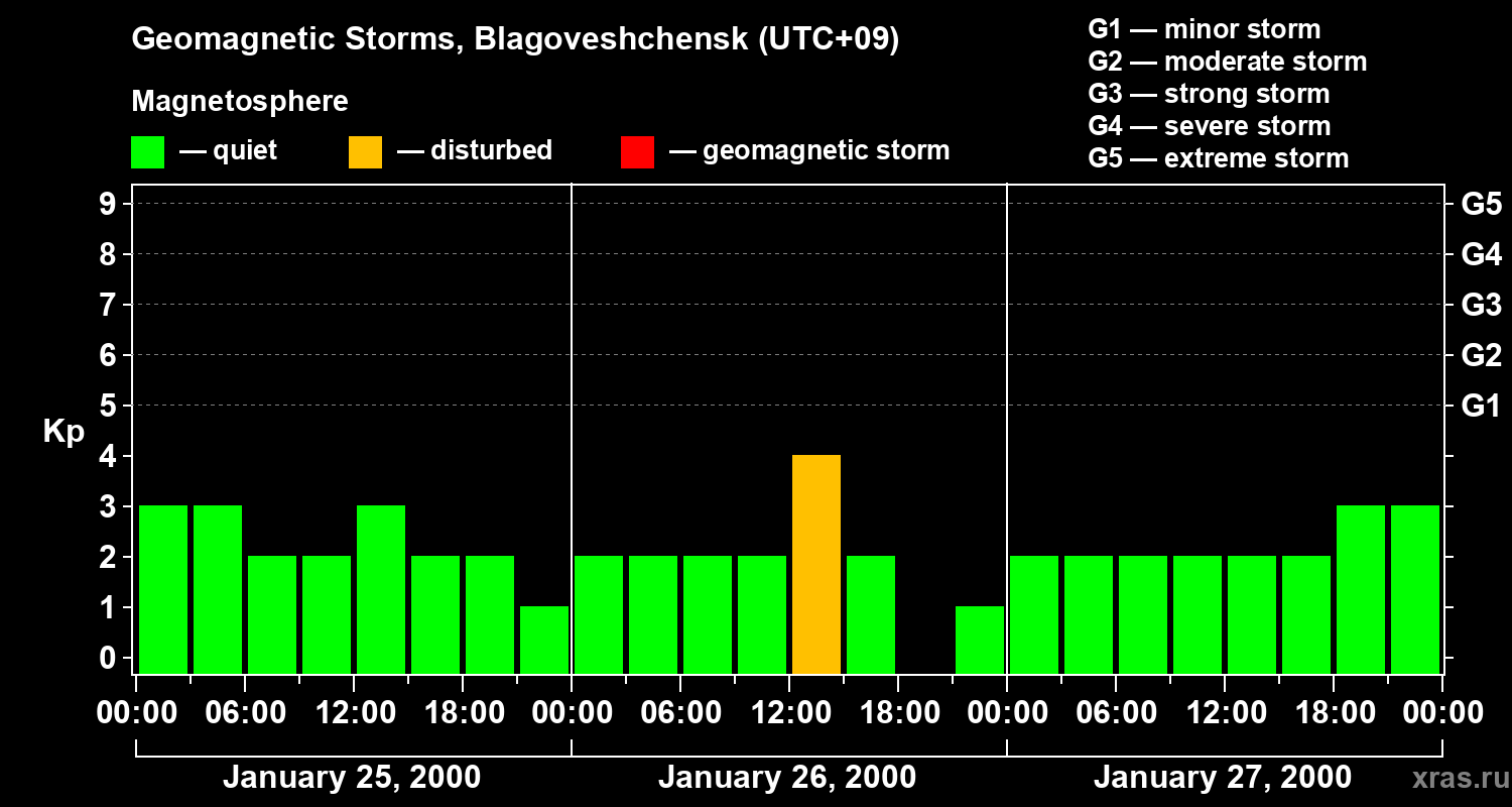 Geomagnetic storms in Blagoveshchensk on Jan 27, 2000