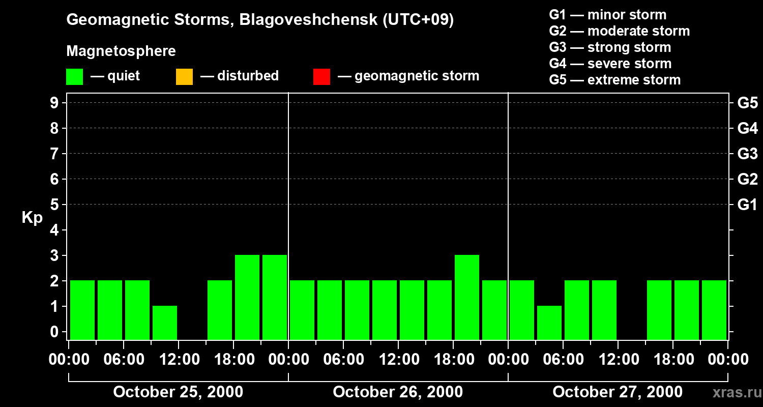 Geomagnetic storms in Blagoveshchensk on Oct 27, 2000