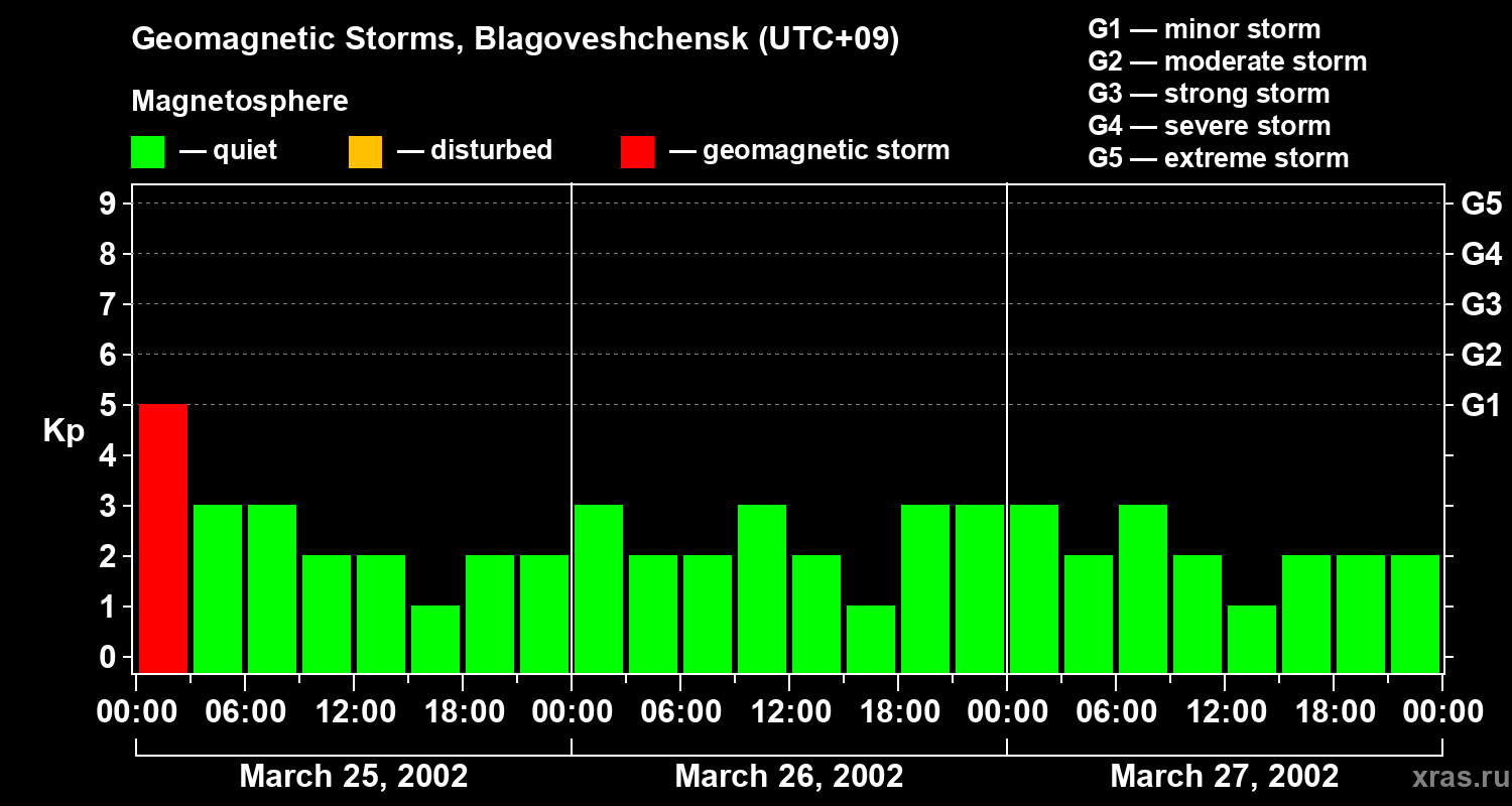Geomagnetic storms in Blagoveshchensk on Mar 27, 2002