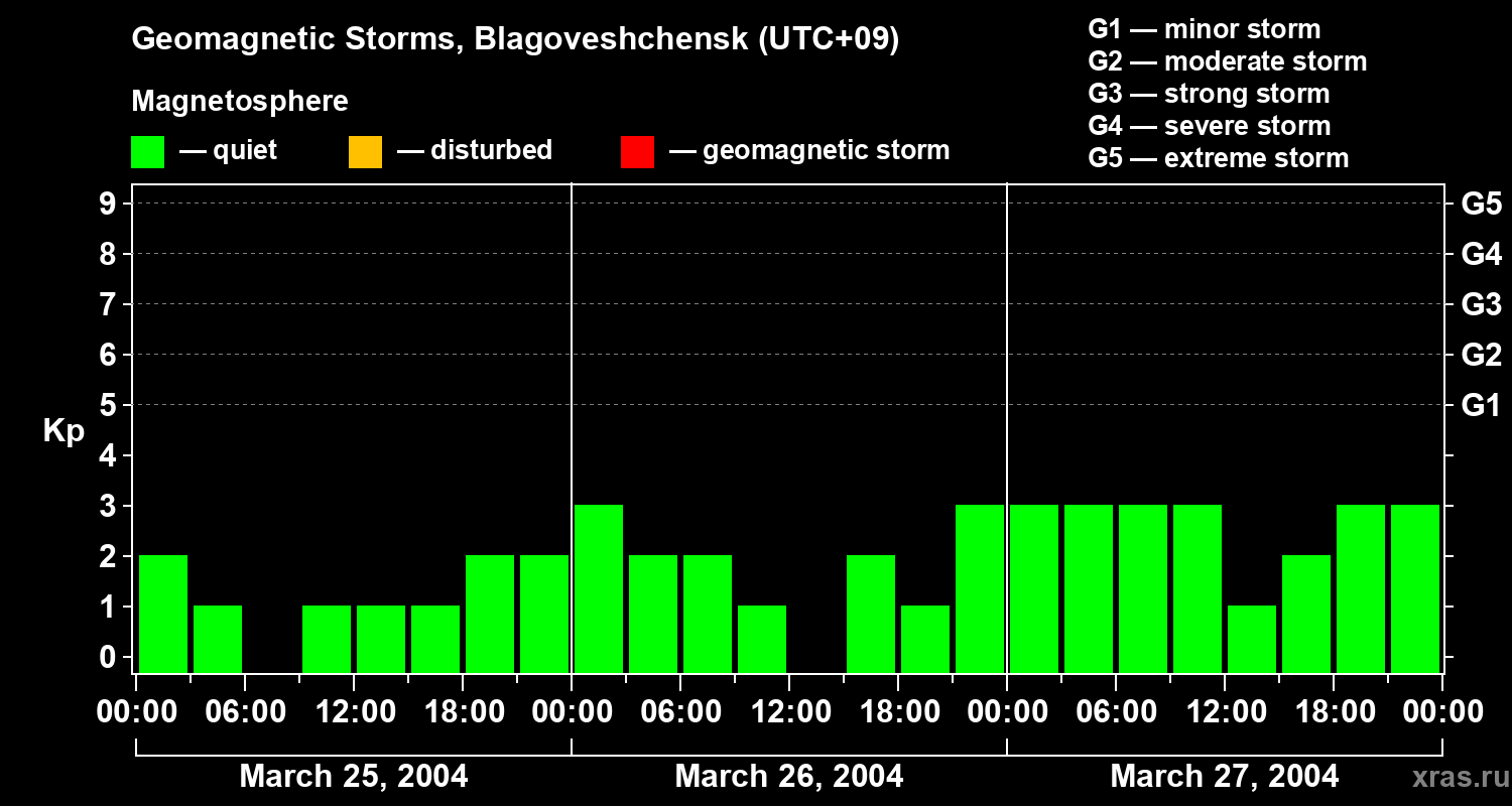 Geomagnetic storms in Blagoveshchensk on Mar 27, 2004