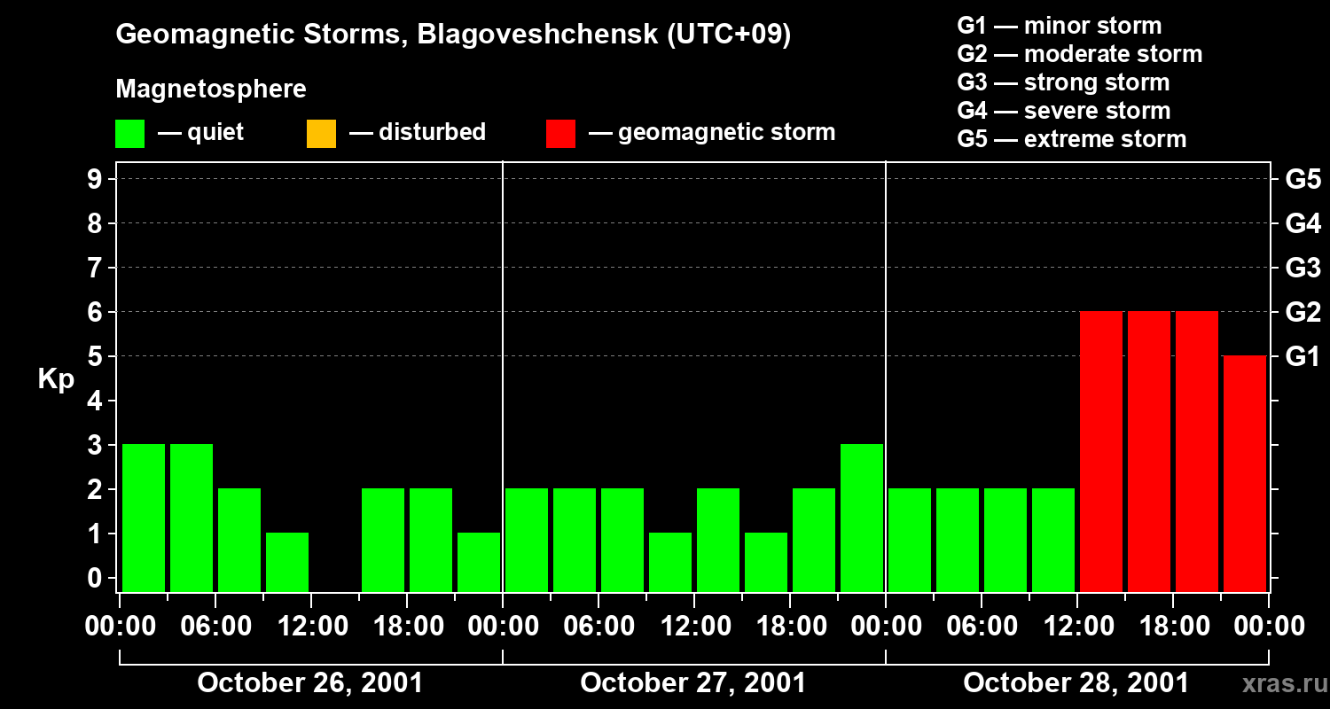 Geomagnetic storms in Blagoveshchensk — Oct 28, 2001
