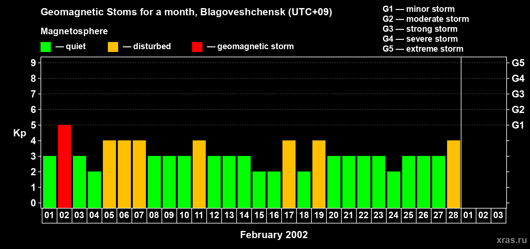 Geomagnetic storms in Blagoveshchensk — Feb 28, 2002