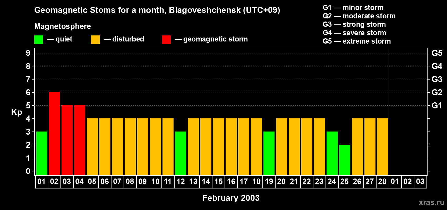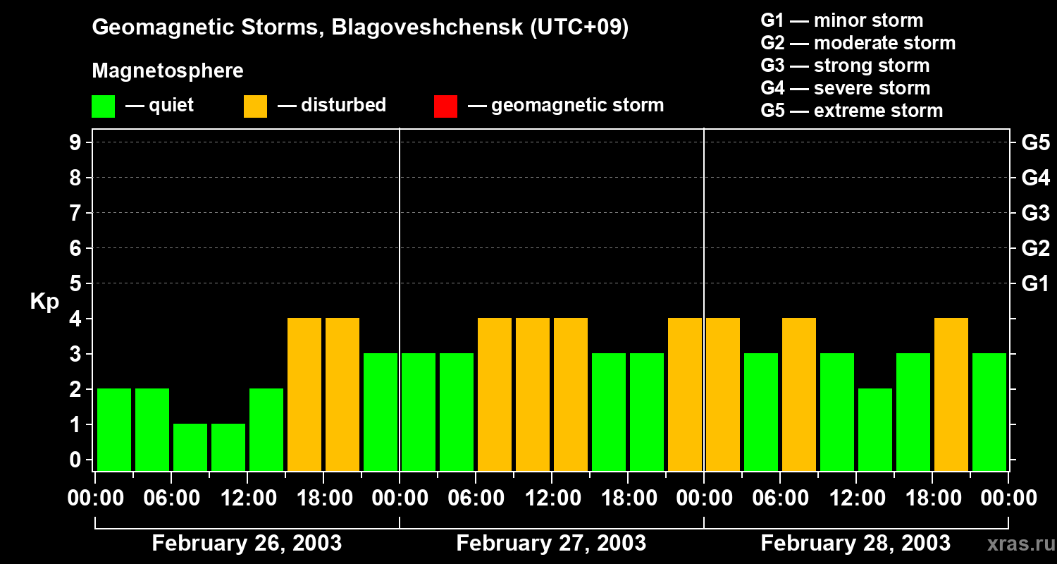 Geomagnetic storms in Blagoveshchensk on Feb 28, 2003