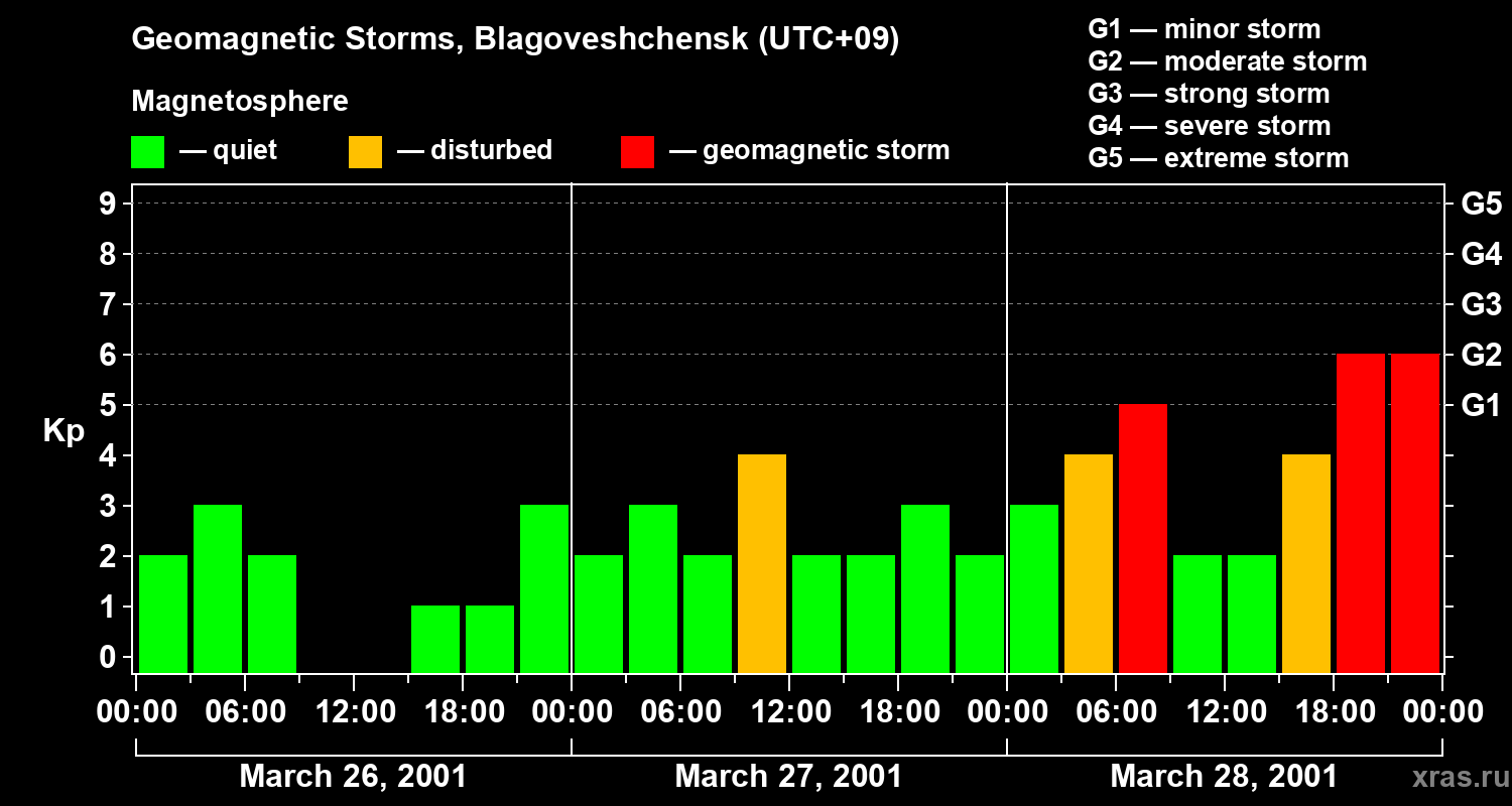 Geomagnetic storms in Blagoveshchensk — Mar 28, 2001