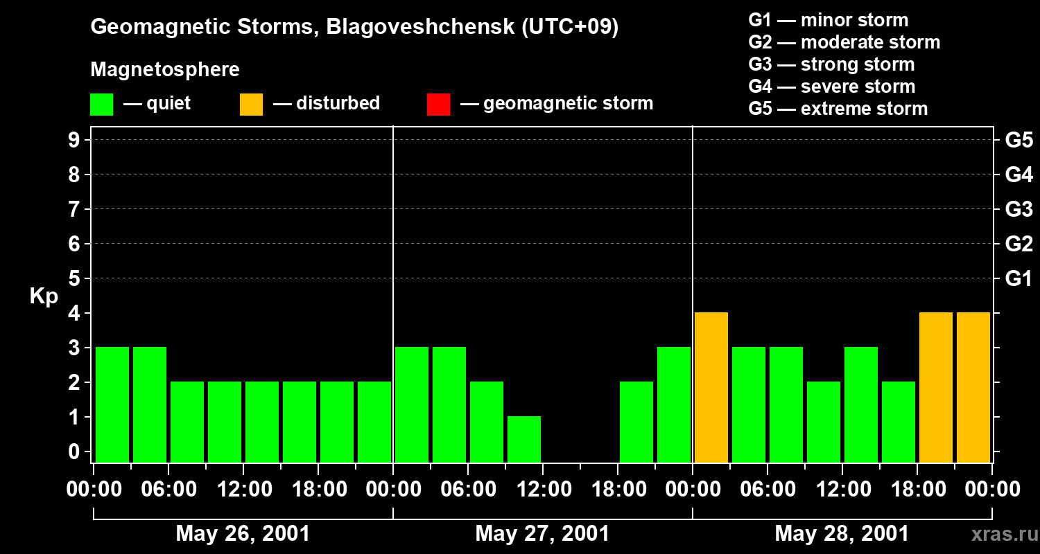 Geomagnetic storms in Blagoveshchensk on May 28, 2001