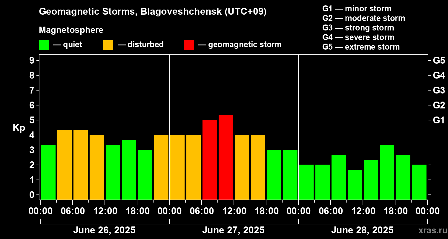 Geomagnetic storms in Blagoveshchensk — Jun 28, 2025