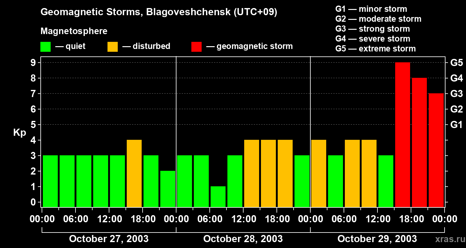 Geomagnetic storms in Blagoveshchensk — Oct 29, 2003