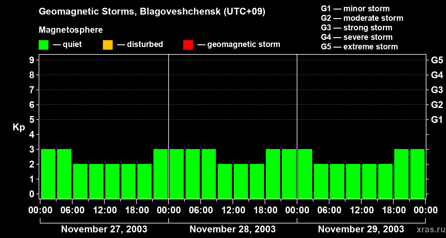 Geomagnetic storms in Blagoveshchensk — Nov 29, 2003